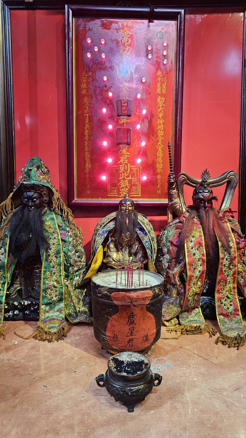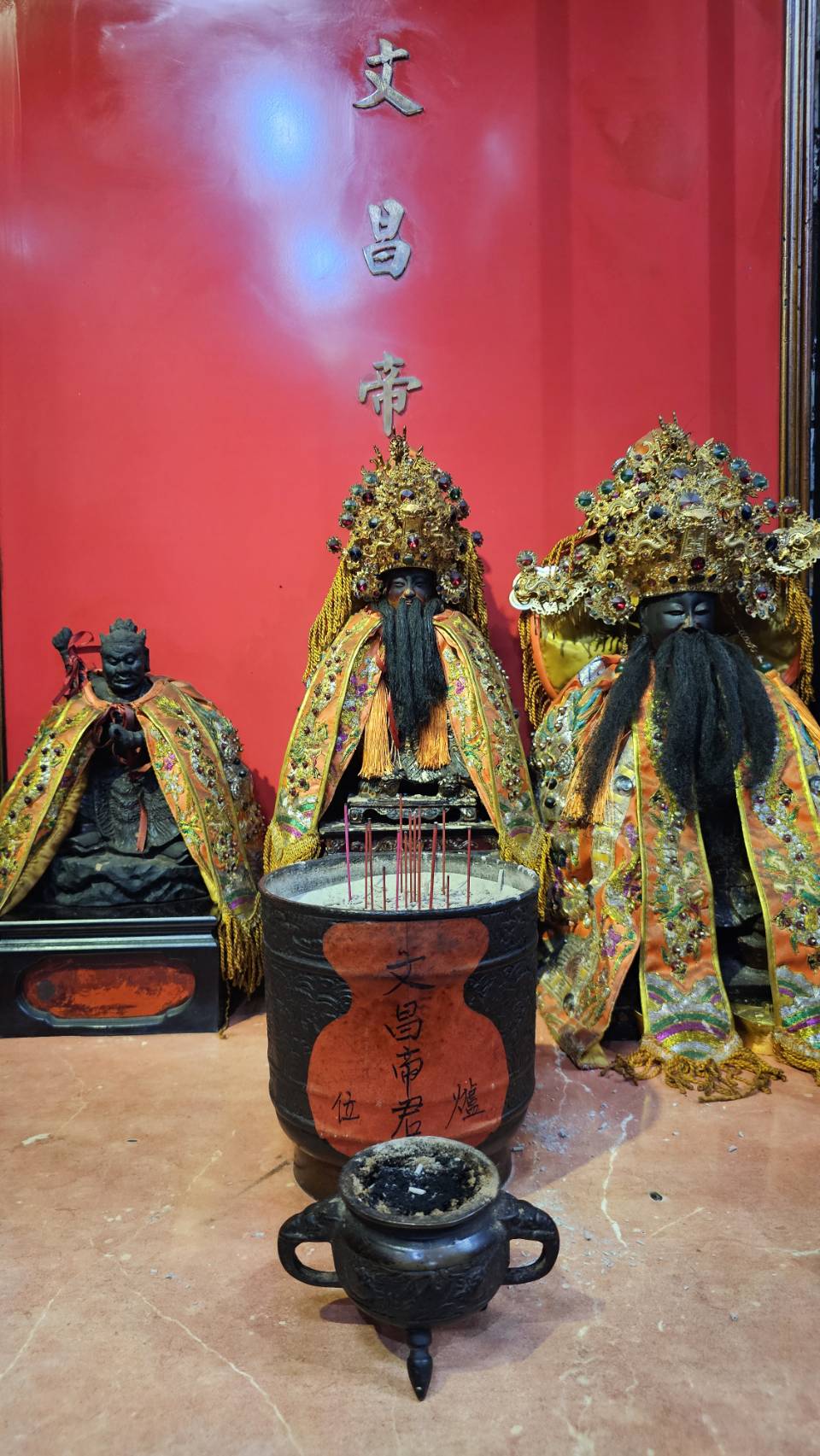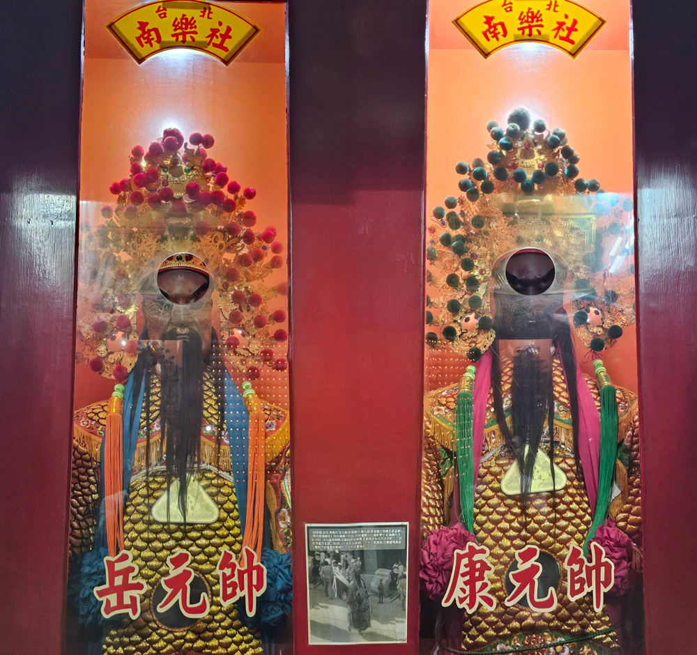 奉祀神尊 — 百年神將(岳元帥、康元帥)岳元帥與康元帥同為本宮恭奉的鎮殿神將,俗稱「百年神將」,為道教體系中勇猛威嚴的護壇神將,象徵扶正祛邪、護國安民之志。 兩尊神將威儀堂堂,亦為本宮遶境與科儀中維護壇場、驅邪淨境的重要守護神。 相傳神將原為忠烈英魂或天界降將,受天道封任,降世護法。 在台灣民間信仰中,神將信仰盛行,各廟多設有「神將團」或「將爺會」, 以「請神出巡」之儀式參與廟會遶境,護祐地方、鎮壓邪祟、庇佑百姓安寧。 本宮之岳、康二元帥神像高大威嚴、甲冑金光,為「台北南樂社」供奉的歷史神將之一,象徵天威顯赫、忠義長存。 信眾敬拜二元帥,可祈求除穢辟邪、鎮宅平安、驅病祈福,並感念其忠勇護民、守護正道之德。