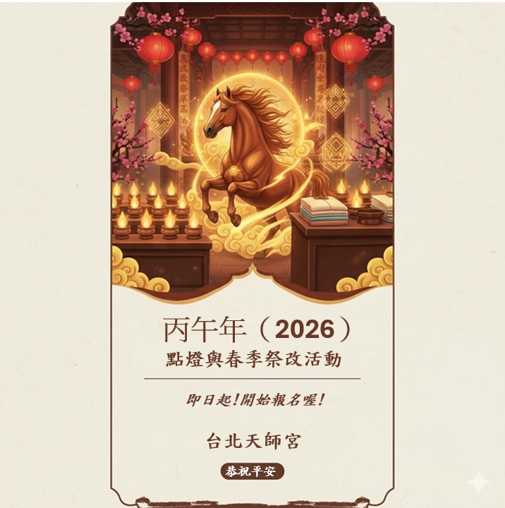 本宮自即日起正式開放丙午年(2026)諸燈科祈福與新春祭改報名。
