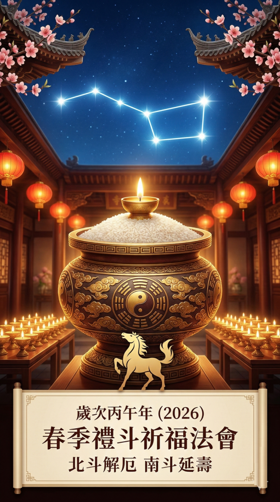 「歲次丙午年 (2026)|春季禮斗祈福法會,即日起正式開放報名。」(3/23,農曆二月初五舉行) 2026-03-06