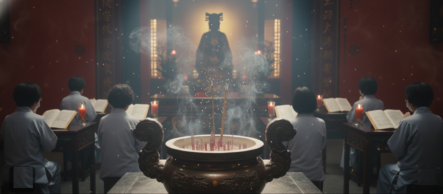 會在每月初一、十五填寫疏文,在廟裡請眾位師姐誦經為報名信眾消災祈福