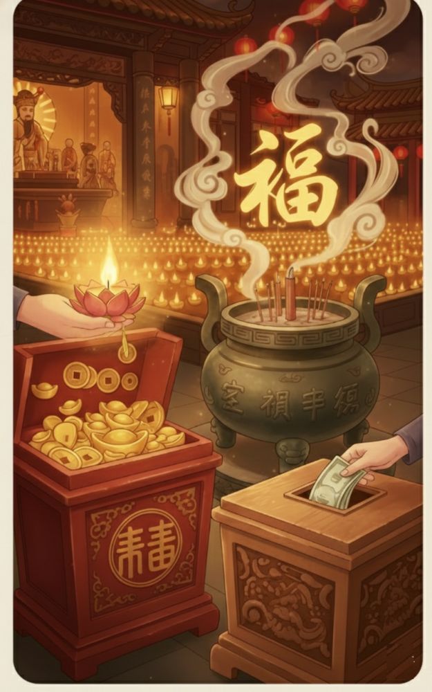 您的護持是維持聖殿莊嚴、香火鼎盛的泉源。滴水成海,功德無量。感恩您的發心布施,祝您福慧雙修,闔家康泰。